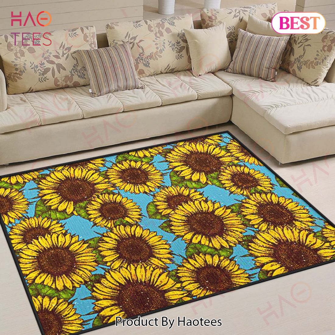 Blue Vintage Sunflower Area Rugs Carpet Mat Kitchen Rugs Floor Decor